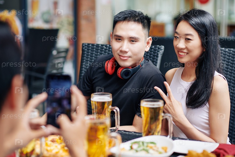 Азиатская пара позирует перед камерой