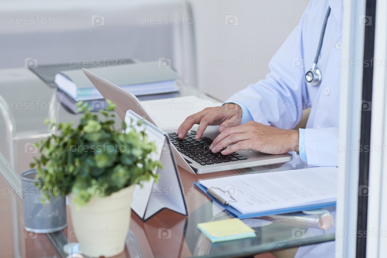 Доктор использует ноутбук