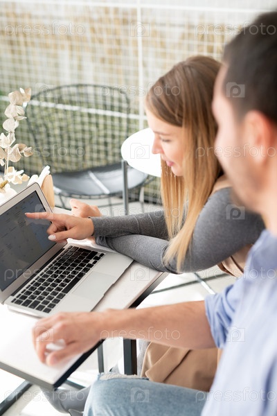 Молодая уверенная в себе бизнесвуменка объясняет рабочий стол коллеге