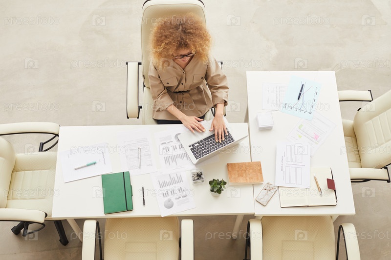 Молодая женщина работает Top View