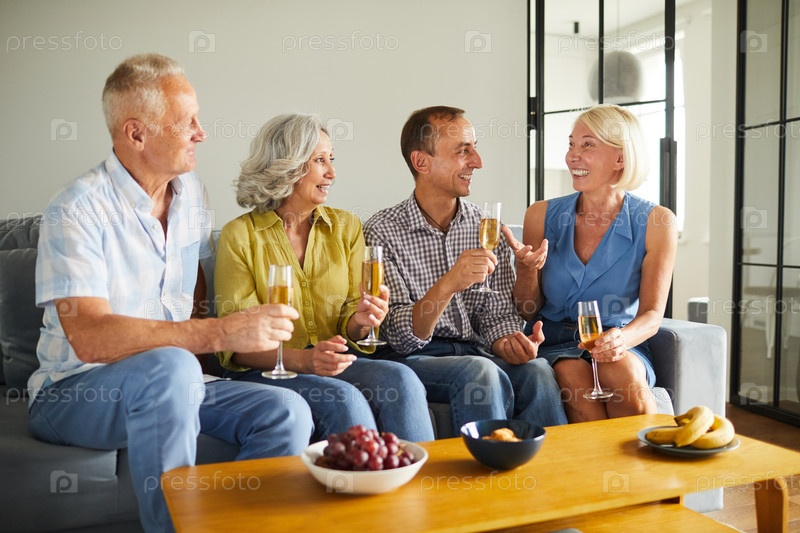 Зрелые люди пьют шампанское на вечеринке