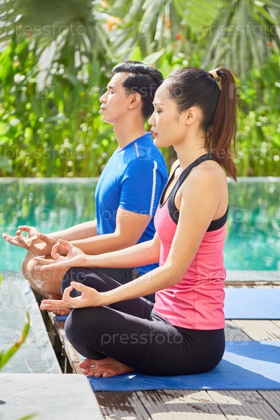 Пара медитирует на свежем воздухе