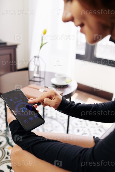 Женщина устанавливает температуру в спальне