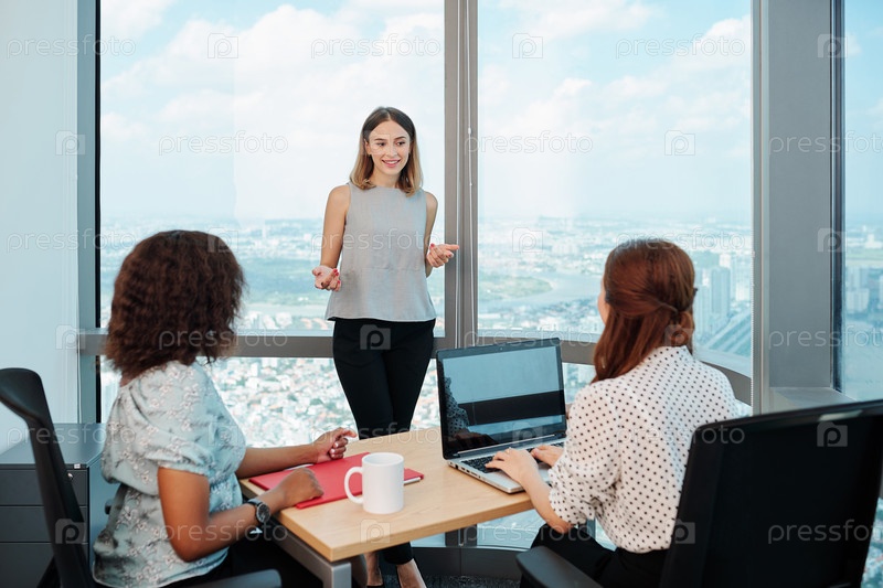 Деловая леди делится своими идеями с коллегами