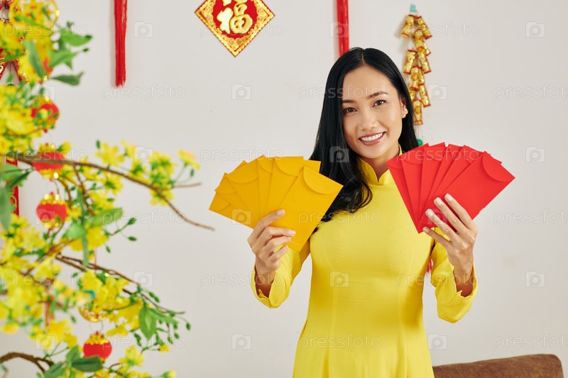 Женщина, показывающая новогодние подарки