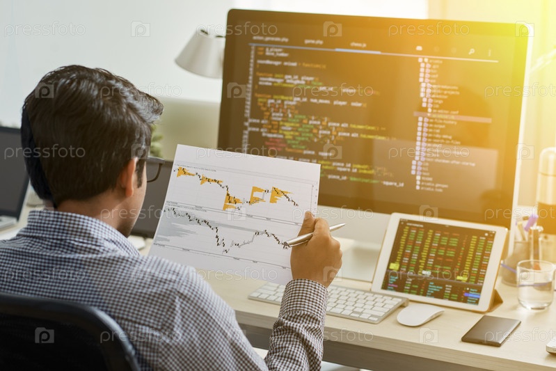 Бизнесмен смотрит на статистику