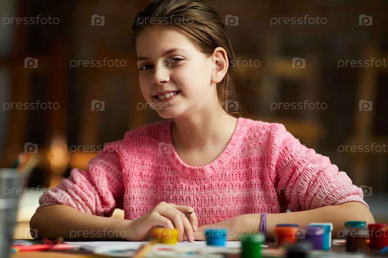 Портрет девочки-подростка рисует