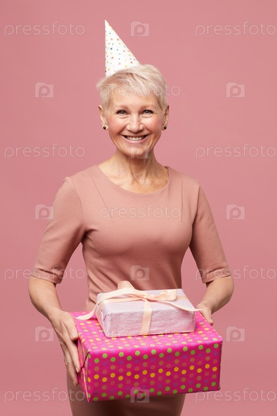 Счастливая зрелая леди с подарками