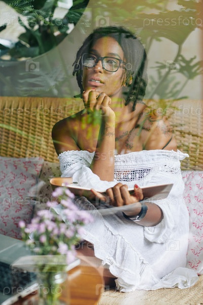 Пенсивная женщина, работающая с отчетом