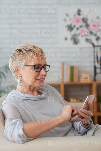 Пожилая женщина, использующая мобильный телефон