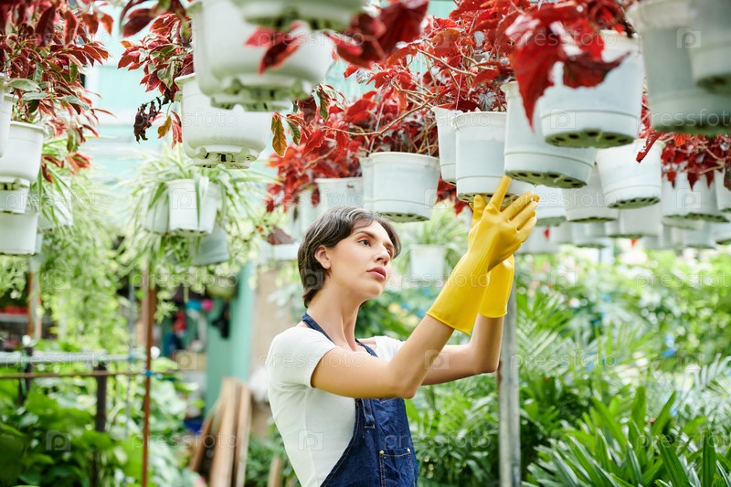 Работник теплицы проверяет горшки