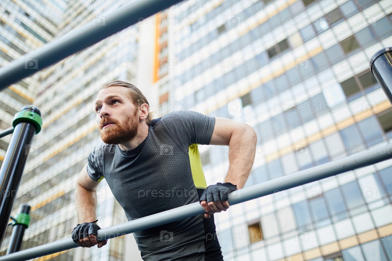 Бородатый мужчина делает буксиры