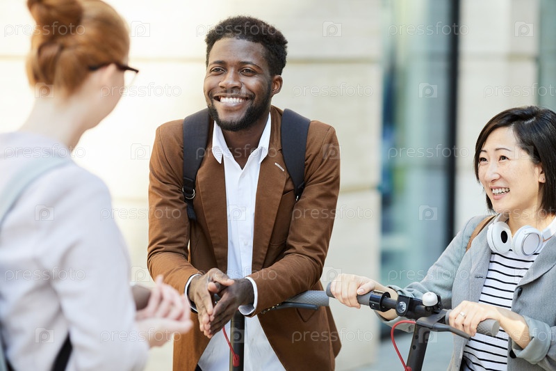 Мультиэтническая группа друзей, беседующих на улице