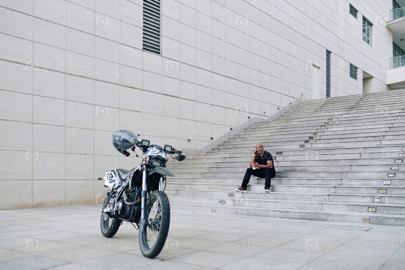 Мужчина отдыхает после езды на мотоцикле