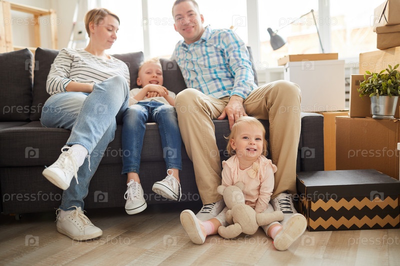 Современная молодая семья дома