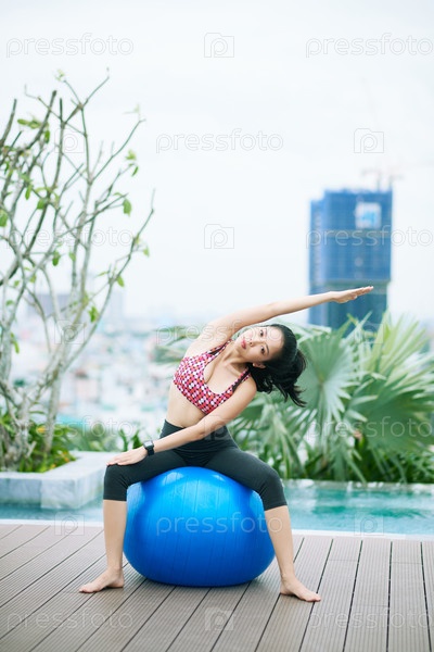 Женщина делает упражнения на фитнес-боле
