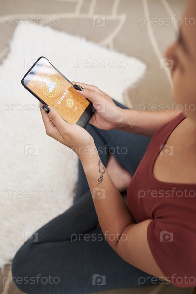 Женщина, использующая руководство по медитации