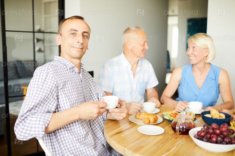 Зрелый мужчина позирует на обеде