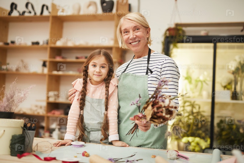 Цветочник позирует с маленькой девочкой
