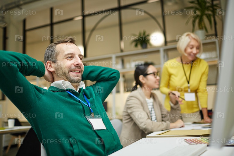 Удовлетворенный менеджер отдыхает после плодотворной работы