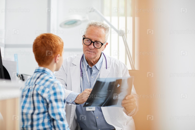Доктор объясняет рентген маленькому мальчику