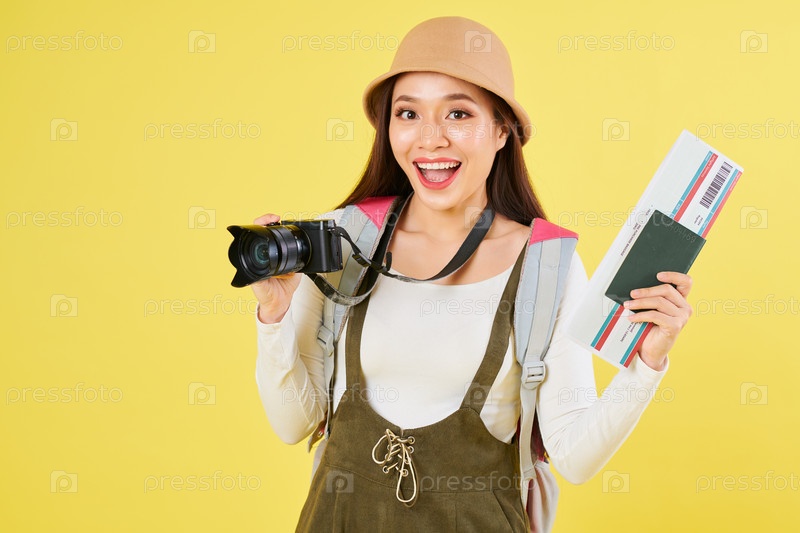 Радостная женщина-туристка