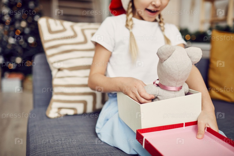 Девочка, открывающая коробку с подарками