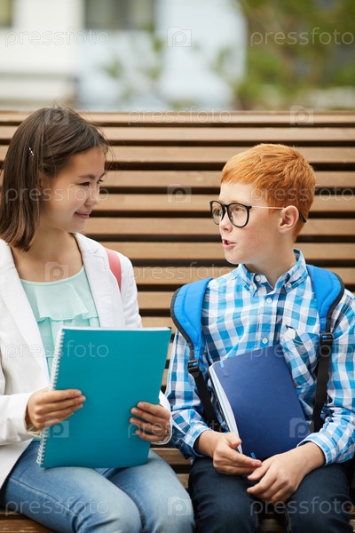 Двое одноклассников обсуждают уроки