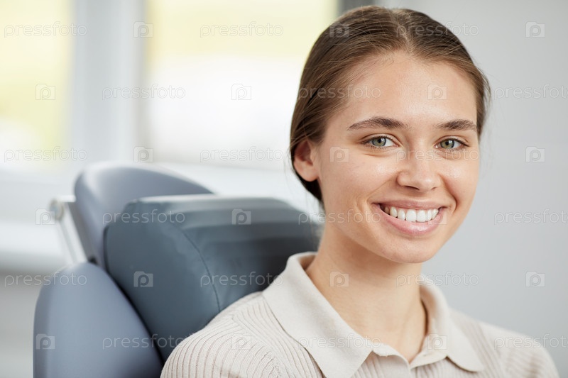 Красивая молодая женщина в стоматологическом кресле