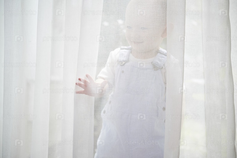 Ребенок стоит за шторой