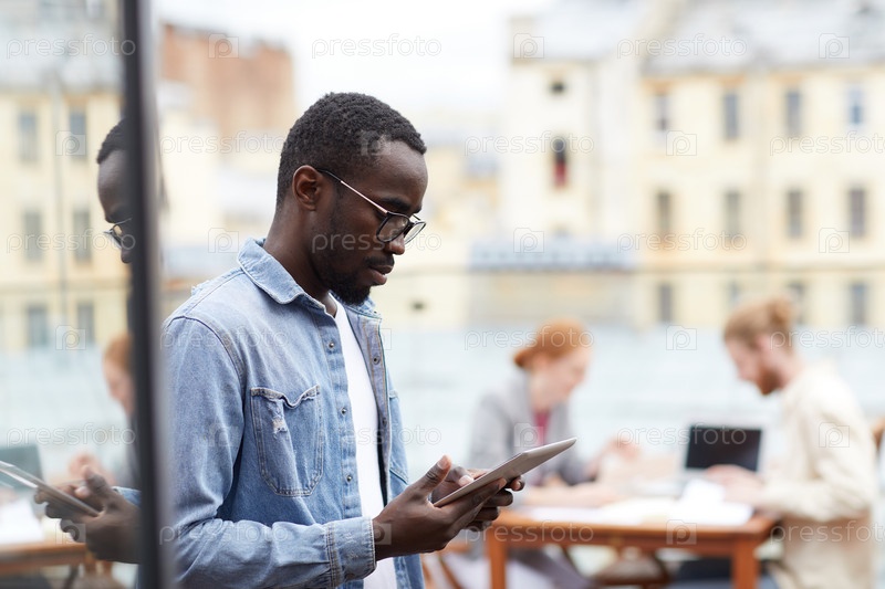 Африканский мужчина, использующий цифровой планшет