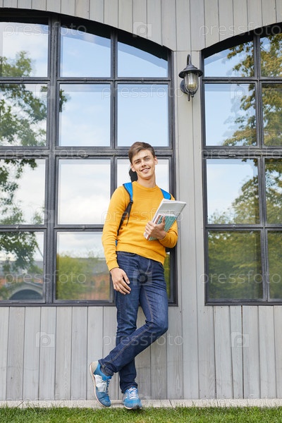 Современный студент позирует на открытом воздухе