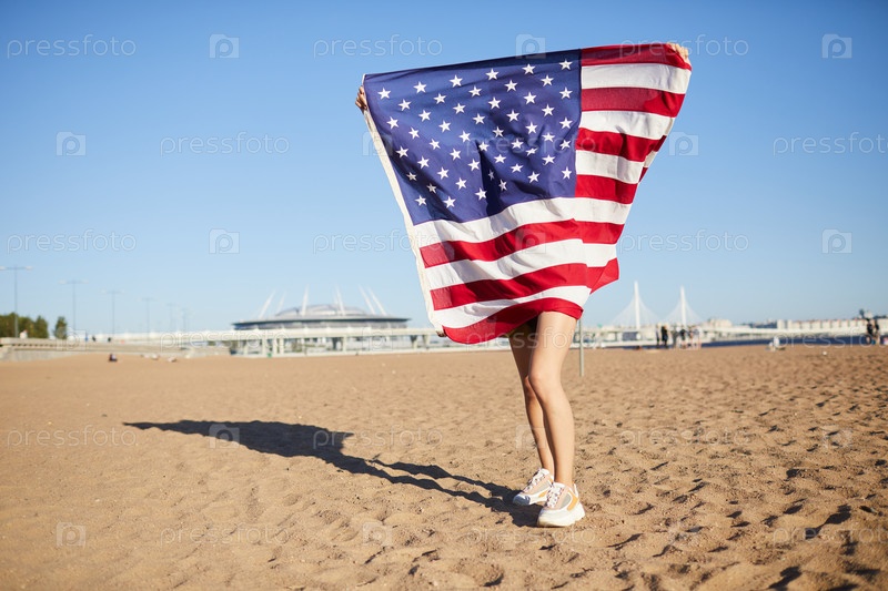 Держит большой флаг США
