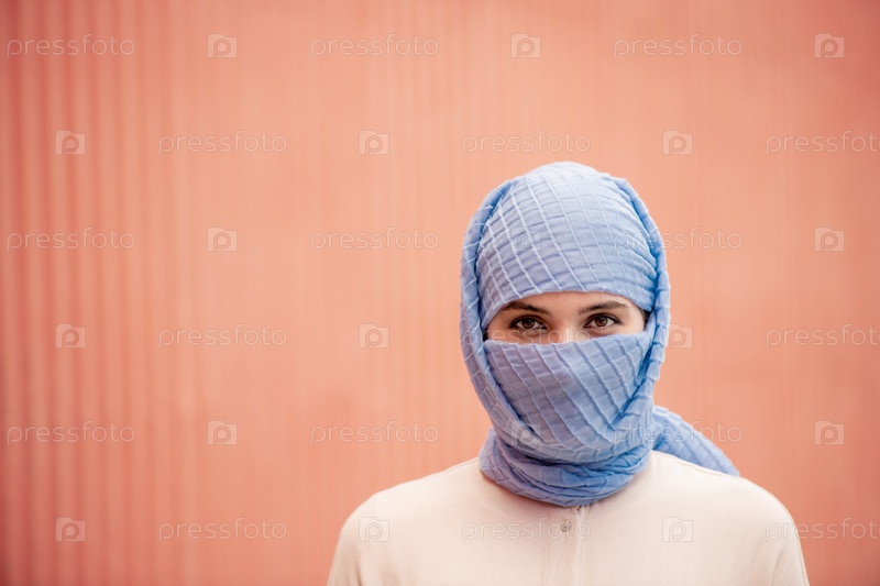 Голова и плечи молодой исламской женщины в хиджабе
