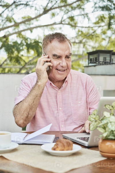 Пожилой бизнесмен разговаривает по телефону
