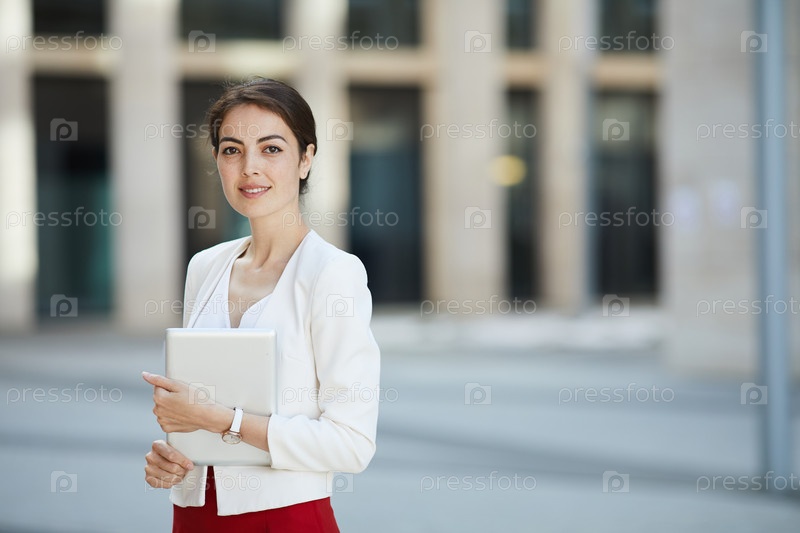 Красивая бизнесвуменка, позирующая на открытом воздухе