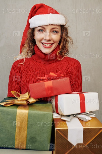 Портрет улыбающейся женщины с подарками