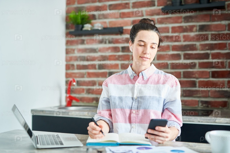 Молодая женщина, работающая из дома Современный