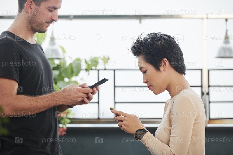 Люди, использующие мобильные телефоны для общения