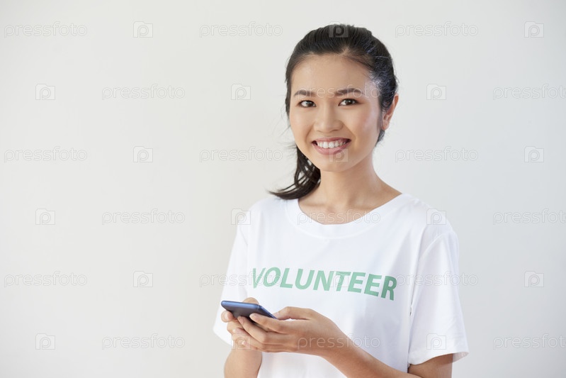 Доброволец, использующий мобильный телефон на работе