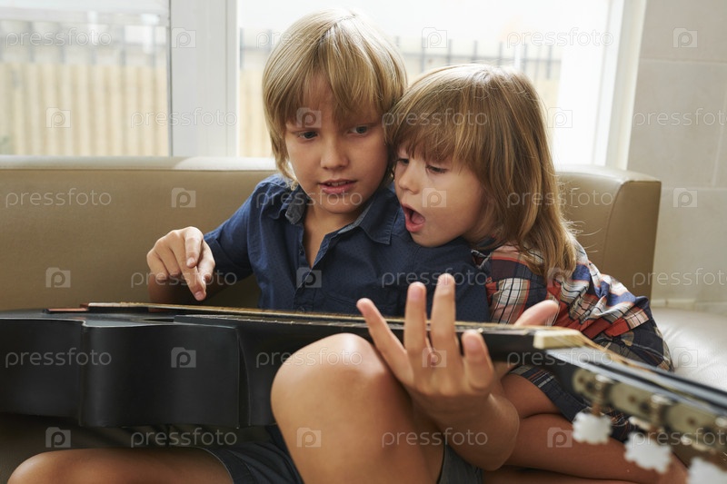 Мальчики играют на акустической гитаре