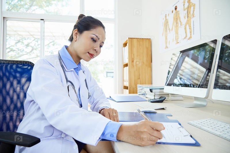 Женщина-врач, пишущая рецепт