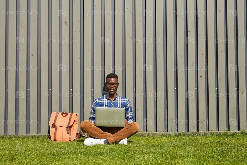 Афроамериканский студент, использующий ноутбук