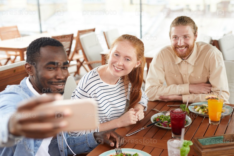 Селфи-портрет друзей во время обеда