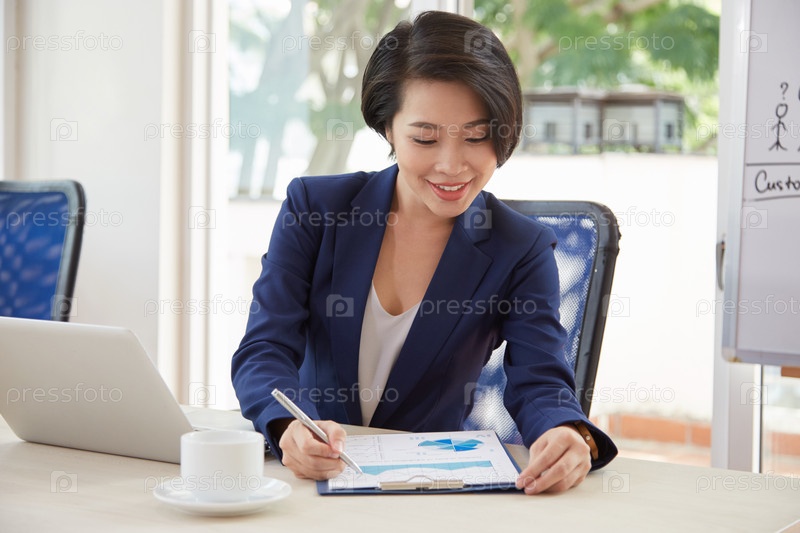 Деловая женщина, работающая с финансовыми диаграммами в офисе