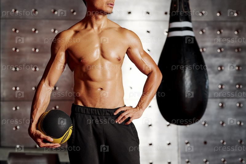 Спортсмен с мячом в тренажерном зале