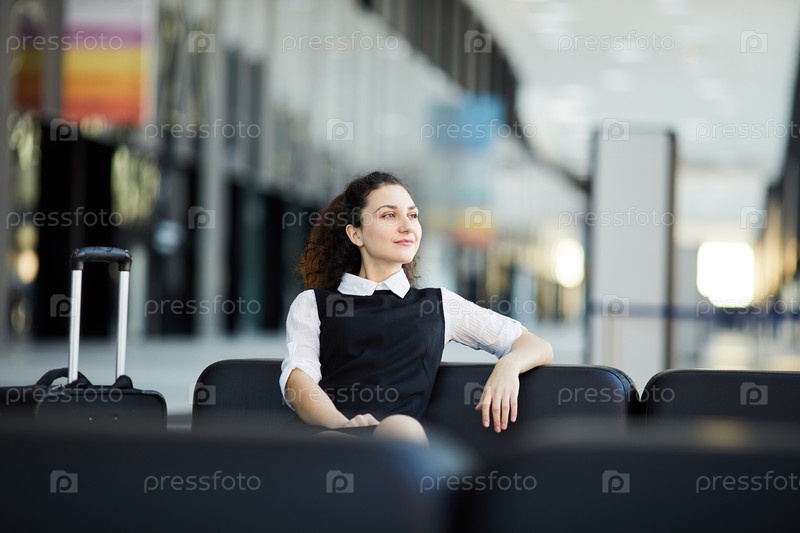 Улыбающаяся женщина ждет в аэропорту