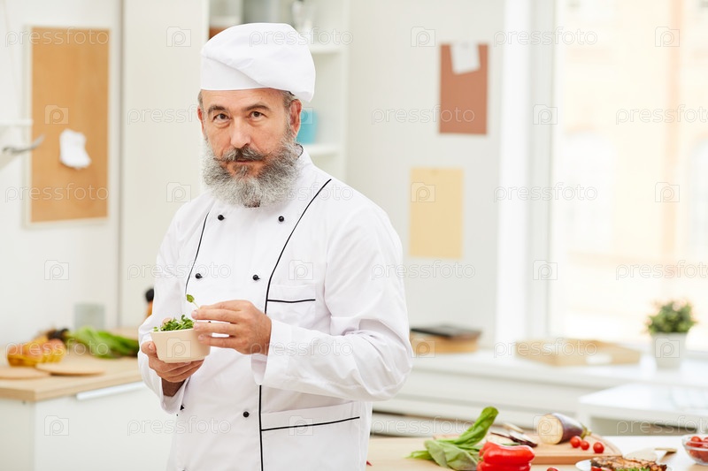 Повар, позирующий на кухне Профессионал