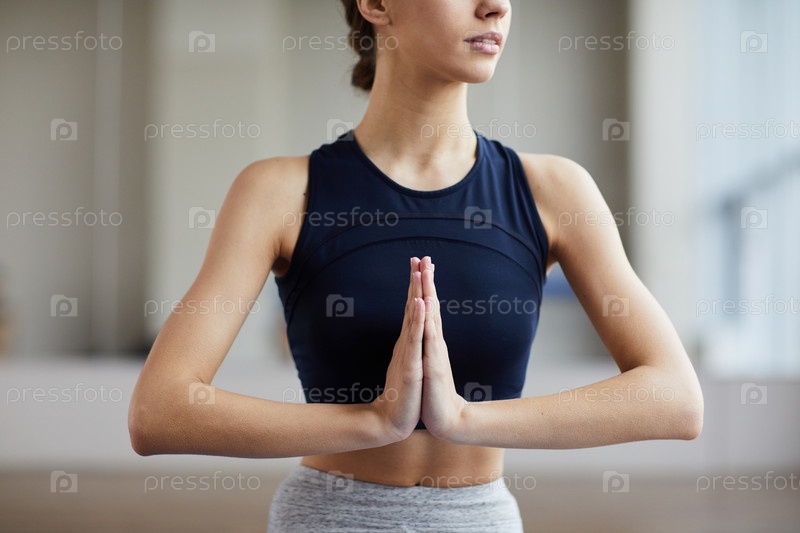 Женщина, соединяющая руки в жесте 'Намасте'