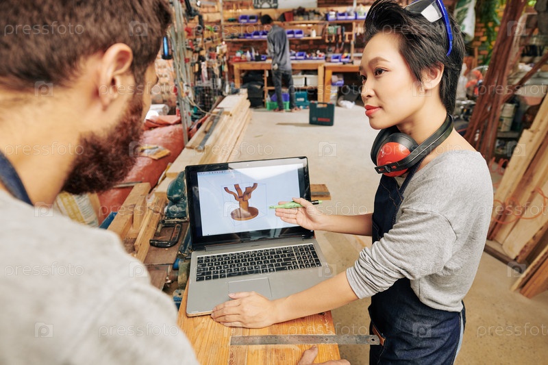 Плотники обсуждают 3D-модель столешницы